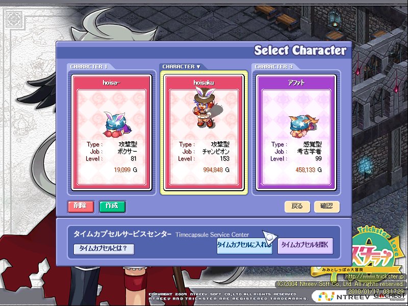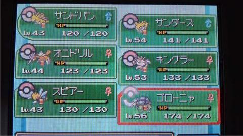 (ちゃんと年賀イラスト描きます…はい。。) 最近MHF(モンスターハンターフロンティア)を始めたのですが…。 ソロではなかなか倒せません。 ピプノックなら鳥類だしソロでも倒せるでしょうと行ったのですが、 甘かった… ほとんどの攻撃が睡眠攻撃で寝てばっかり; ランスで挑んだのが間違いなのか倒せませんでしたorz まだまだ下手くそです。 続いてTS(トリックスター-ラブ-)。 ジュエリア 見て分かるように?装備も古いです(高級リュックサックなんか誰も装備してねー)、 レベルも低い。。 ファンタジア。 こちらは1年前まで使ってたのでそこそこのレベルです。 それでも装備は古いのでしょうね…。 もうクエもエピクエも遣ったクエがリセットされてたり、パスワード管理が多くて色々面倒です。 とりあえずエピクエをまた遣っていきます; そういや、目玉おやじの声の人がお亡くなりになられたそうな。 もうあの声が聞けないとなるとさびしいもんです。 こんなパーティで四天王に挑んでいきます。 レベル低い連中はゴローンのじばくに耐え切れないポケ達です。 最初のイツキ戦はサンドパンの「ころがる」で4匹倒せました。 サンドパンがやられたのでオニドリルを出し1匹倒したところでオニドリルもやられました、サンドパンもオニドリル寝たらアカンわ。 その後はサンダースの「10まんボルト」変な鳥ポケモンを撃破! 変にイツキ戦はてこずりってしまいましたよ; その後のキョウ戦、シバ戦はゴローニャのマグニチュード、じしんでほぼ1撃でしたひこう以外の相手はゴローニャで十分かも。。 で四天王4人目(名前忘れましたが)、サンダースを先頭で出しブラッキーは「10まんボルト」で適当に倒し、あとのルージュラとかも「10まんボルト」で十分でした。 で、最後ですよ最後。 出たよワタル!友達が「アルティメットカイリュウを倒せば勝てる!!」と友達が云ってたぜ! ワタルの前でポケモンも回復させてから戦おうと近づいたらワタルゾーンに入ったのかもう強制戦闘orz 最初のギャラドスは「10まん(ry」で1撃で良しとして… そのあとのカイリューの「げきりん」…もうダメだダメージが大きすぎる! サンダースの「10ま(ry」で半分まで減らしと思ったら実食って回復するし、そりゃ「げきりん」食らって負けます。 ゴローニャも「げきりん」でアウト、じめん技が食らえばな~。 スピアーの攻撃でHPを赤ラインまで削ったけどアイテムで全回復~。 次のターンで攻撃を食らわすものの倒されました。 残るはキングラーな訳ですが!「ふみつけ」2回で何とかカイリュー1匹倒せました。 さてさて、お次もカイリューを出してきて「かみなり」…ハイ!終わりー。 ワタルに6千円巻き上げられて返ってきましたよ(四天王戦最初に挑むときはお母さんに全額預けてきてます)。 ・・・ちくしょー!ワタルめ!!!カイリューは万能か!!! ホントにカイリューないわ~。 スピアースピードあっても威力が足らないから1撃でやられる事は多いし…。 ちなみにサンダースは友達から貰ったイーブイを進化させたのですが経験値も多く貰えるし好きなポケモンなのでお気に入りです。 ソーナンスでも育てようかな、カイロスとサワムラーも育ててみたかったり。 自分は人があまり使わないポケモンが好きだったりします。 次は四天王を倒します!サンダースが居れば勝てるはず!キングラーの「ハサミギロチン」はカイリューに当てたいところですね。 ポケモンSS買いました。 今のところこのメンバーがベストだったりします。 水ポケモン相手に微妙に苦戦するメンバーです、ライバルのワニノコにフルボッコですよ; ヒノアラシは育て屋さんに預けて卵産みです。 メンバーに金銀のポケモンが居ないのがちょっと残念なのでニドリーナと入れ替える予定だったり…何が良いんですかね~。 でもヒョロゾが育てたかったりします(ポケモンの漫画の影響で好きなポケモンが決まってる気が…)。 誰もが使うポケモンを使うのが嫌だったりします…。 「なら、ホーホーだな」っと友達に云われましたがオニドリルが良いんです! キングラーが一番好きなポケモンだったりするのですが、コイツかなり強くなったもんですね、ジム戦はずっと「ふみつけ」で勝ち進んでましたし、このレベルで攻撃力100は惚れます。 そういえばWi-Fi通信をしてみたんですがよく分かりませんでした。 ポケモントレードは良いとは思うんですが交換条件とかあるとなると全クりするまで活用は出来なさそうです。 そんな感じでペルソナもまだ1回しかクリアしてないのにポケモンに浮気中です。 MGOも飽きたので調度良かったかな。 |